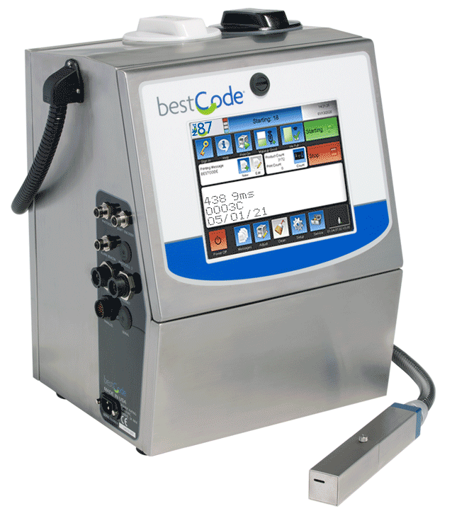The Model 87 is targeted at markets that have minimum requirement of 4 line printing, “multi-lingual” coding applications, printing 1, 2, 3, 4 or 5 lines of text, barcodes or graphics. A complete range of dye and soft pigmented inks available in a variety of colors for a wide range of applications.
